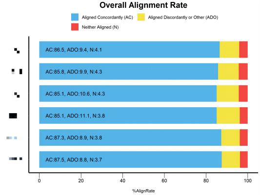 该例中取消了不和谐比对的统计(默认参数是会将不和谐比对纳入总比对率中的)。