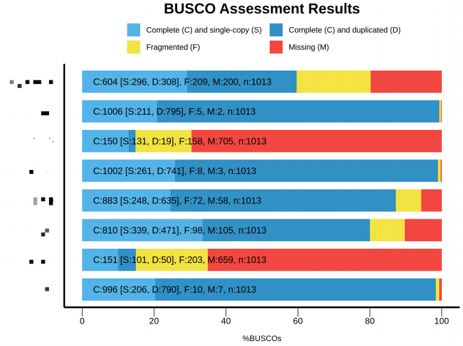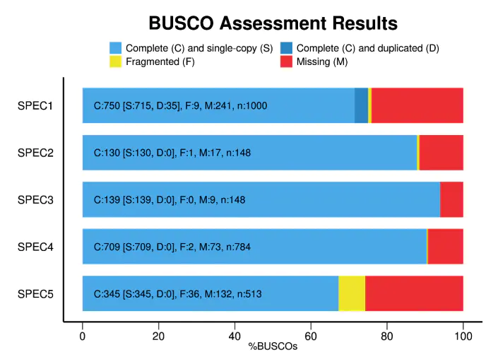 BUSCO 相较于上述两者会直观很多,它的全称叫做 Benchmarking Universal Single-Copy Orthologs 。