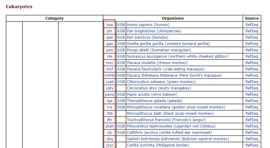 首先 KEGG 数据库所涵盖的物种列表在 https://www.genome.jp/kegg/catalog/org_list.html 中。
