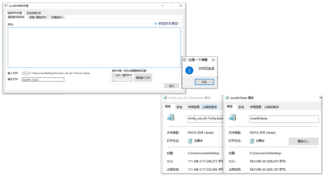 准备好后点击运行,将会产生对应的输出文件,实际操作: