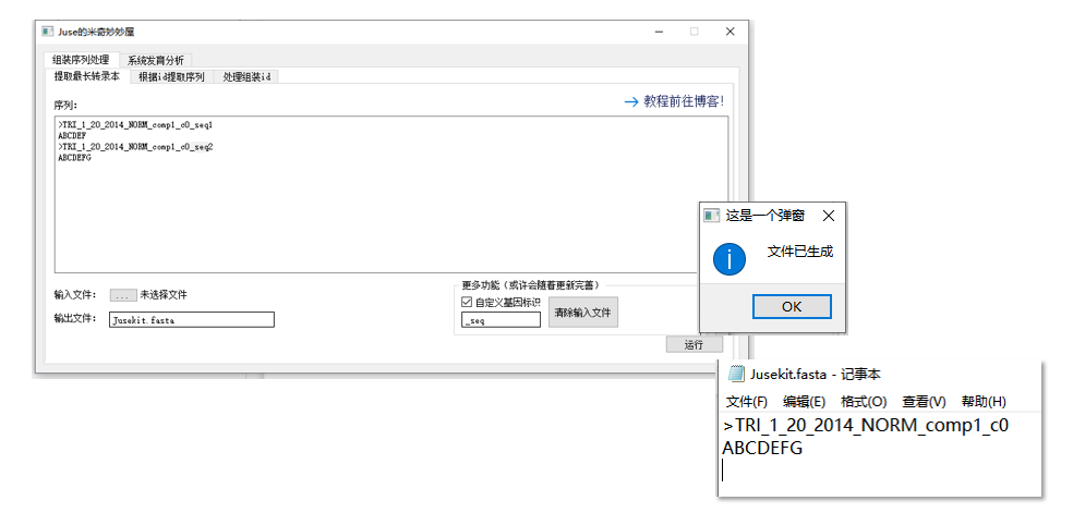 输出文件的名称默认是 longest_contig.fasta ,可以自定义修改。注意: