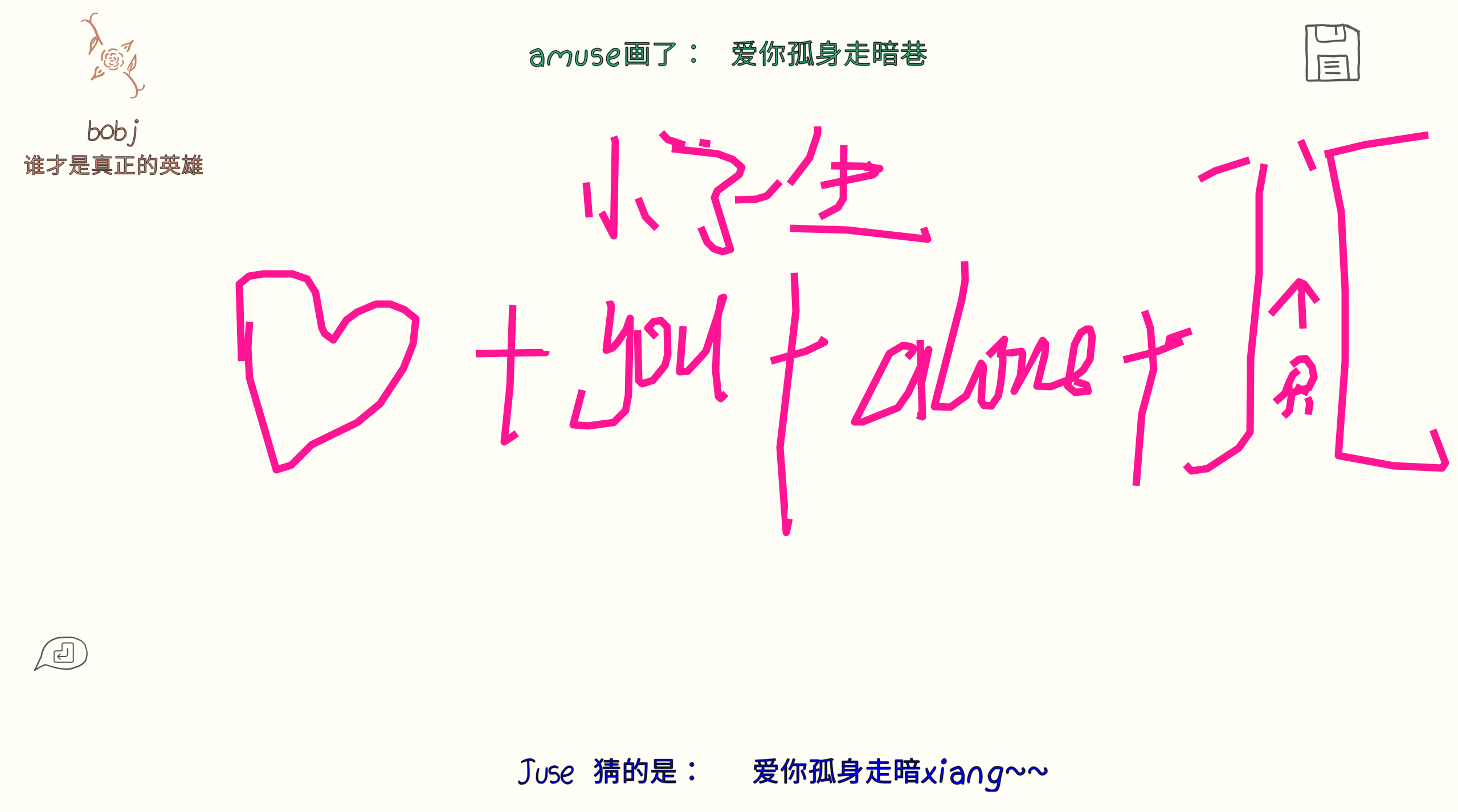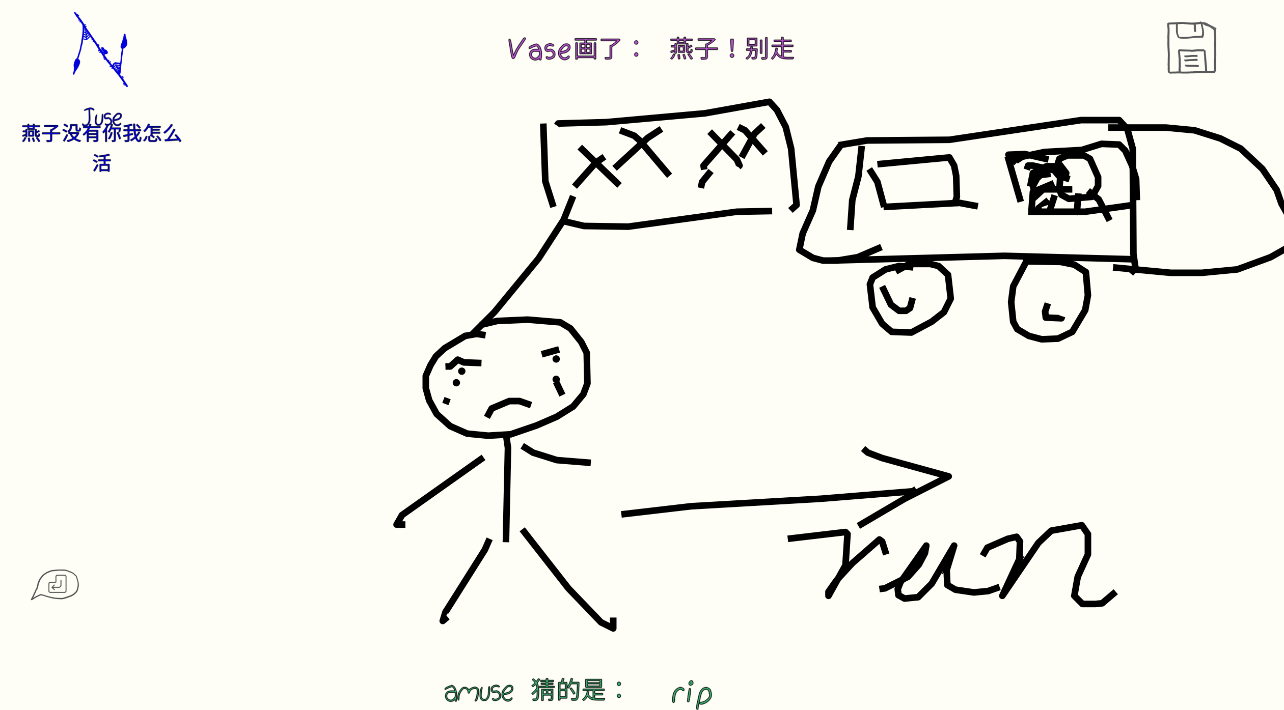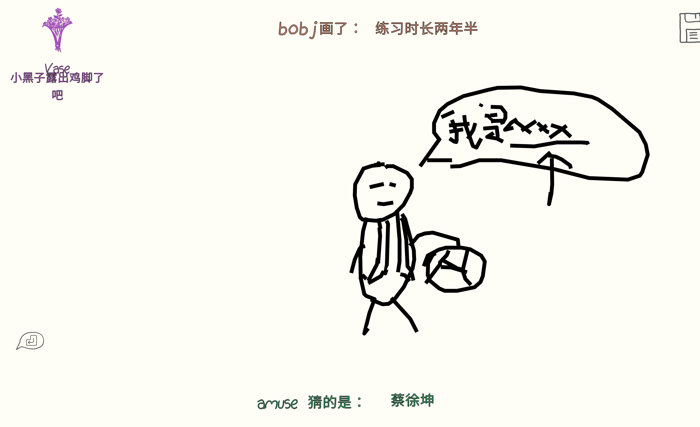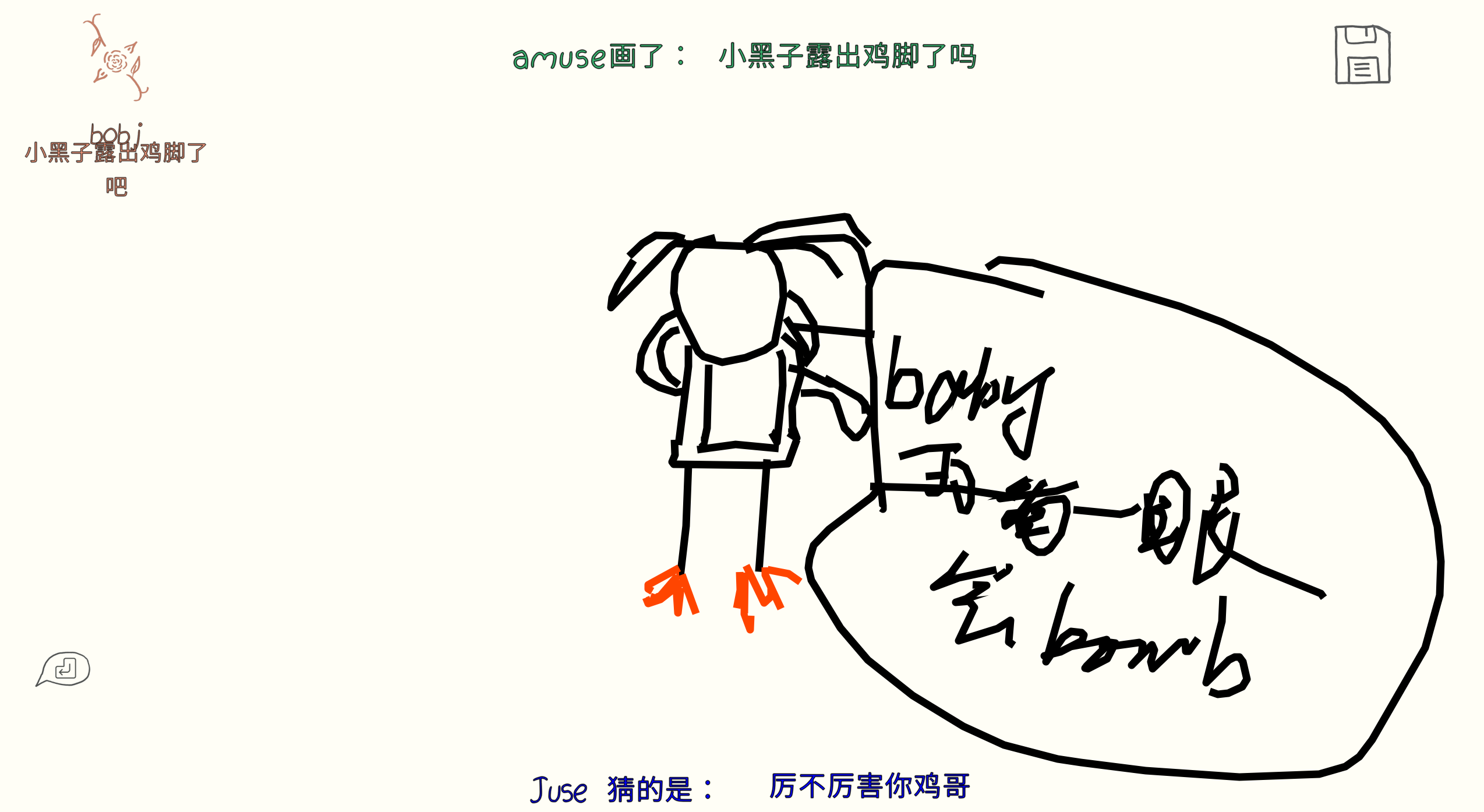 很久没有更新和兄弟们的游戏杂谈了,虽然从去年建博客之初到现在也玩了很多诸如鹅鸭杀、森林、逃脱者2、恐鬼症等一系列优质作品,但由于各种原因一直没有记录下来(主要是因为懒)。今天晚上玩了你画我猜,由于实在是太乐了,而且谭先生也提出了写博客的想法,所以就干脆趁着这股劲先把记忆放在博客里吧。