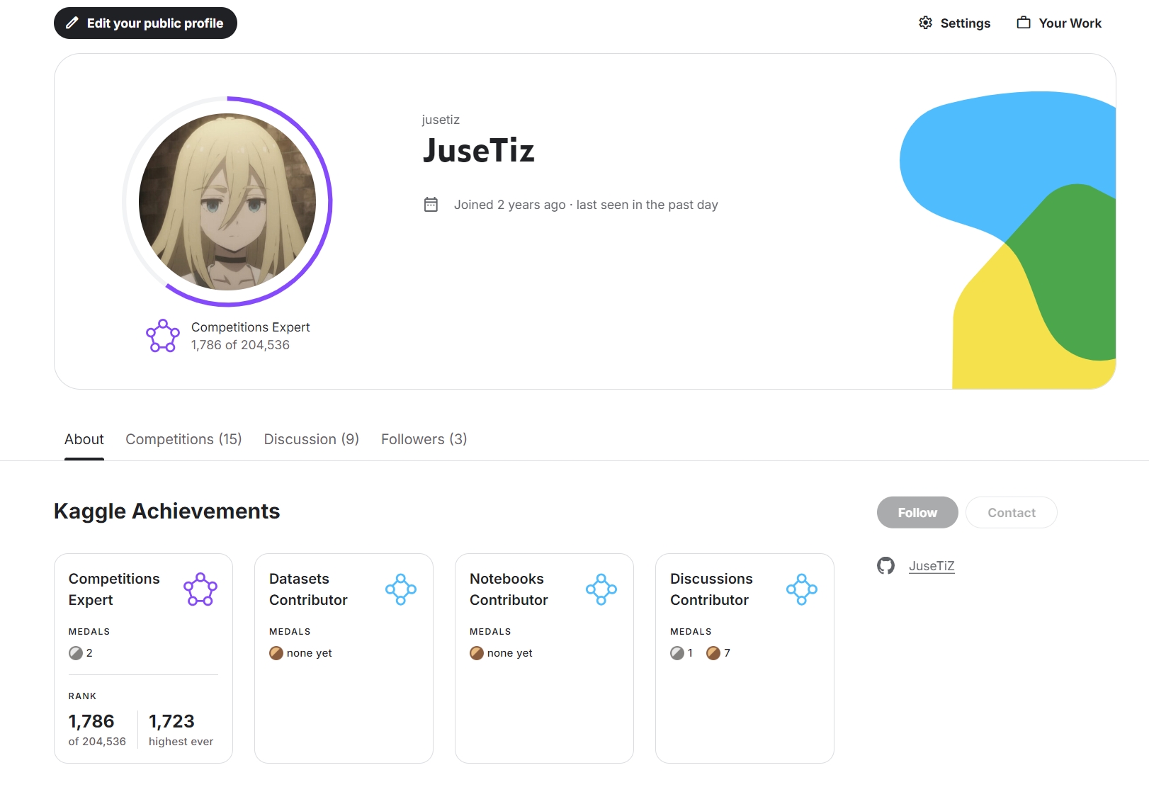 前一段时间 kaggle 拿到了第二块银牌,荣升竞赛专家(Competitions Expert)。